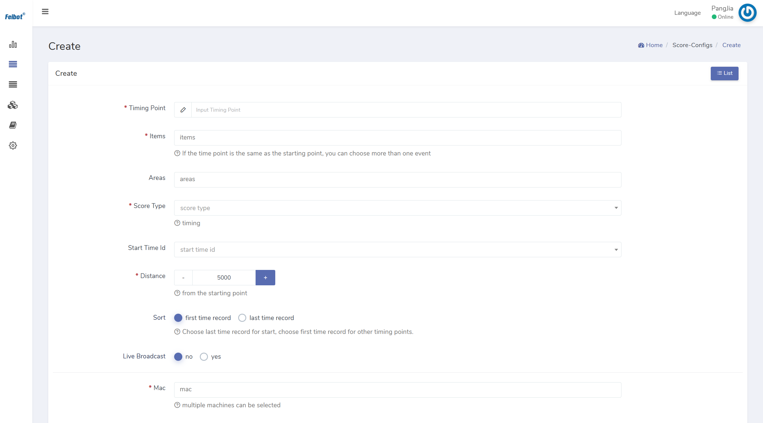 Main features: event creation, event management, result display, finishing certificates, etc.
