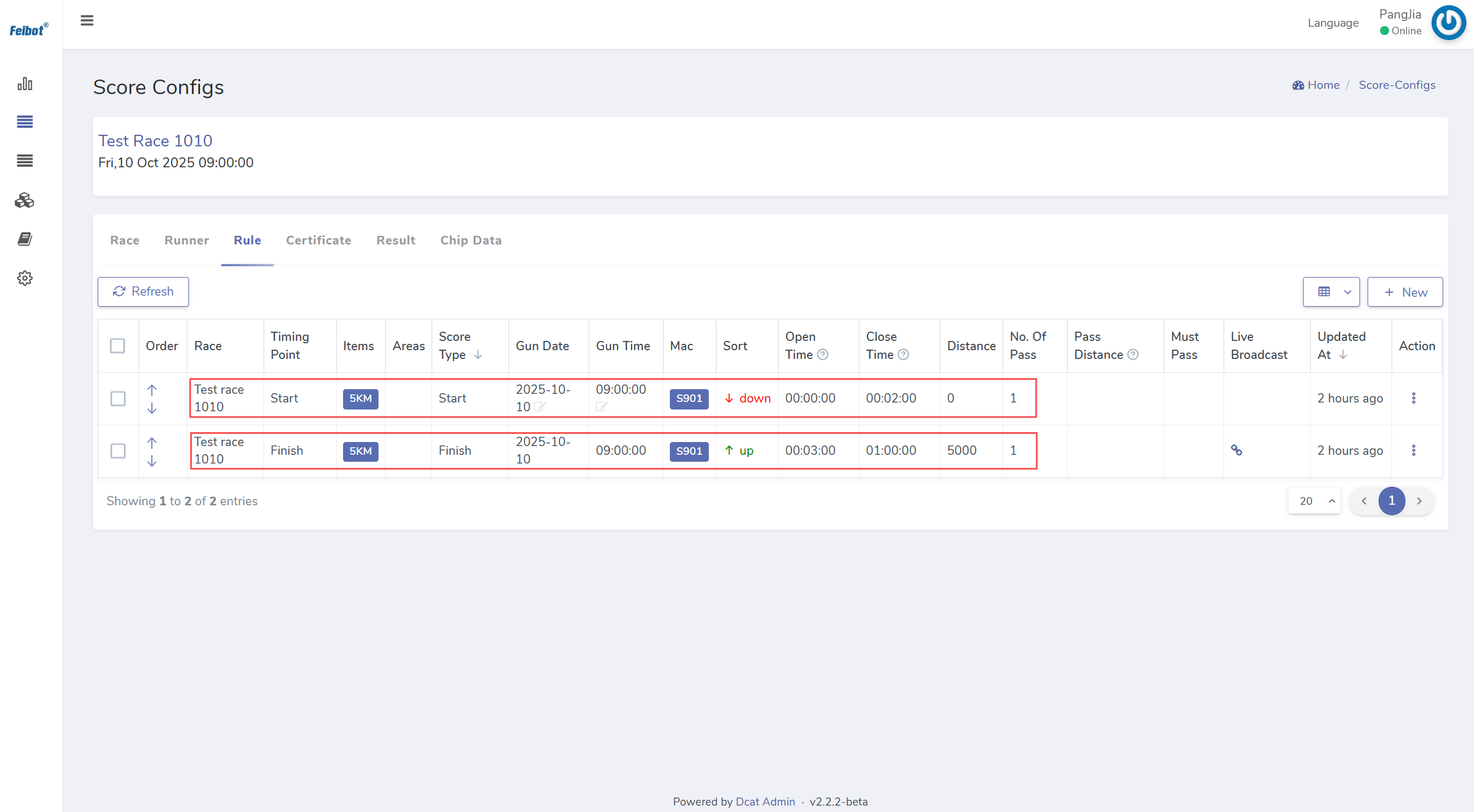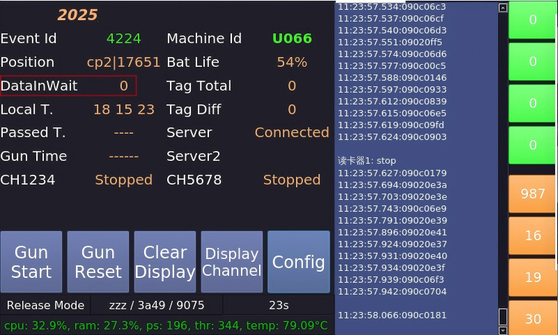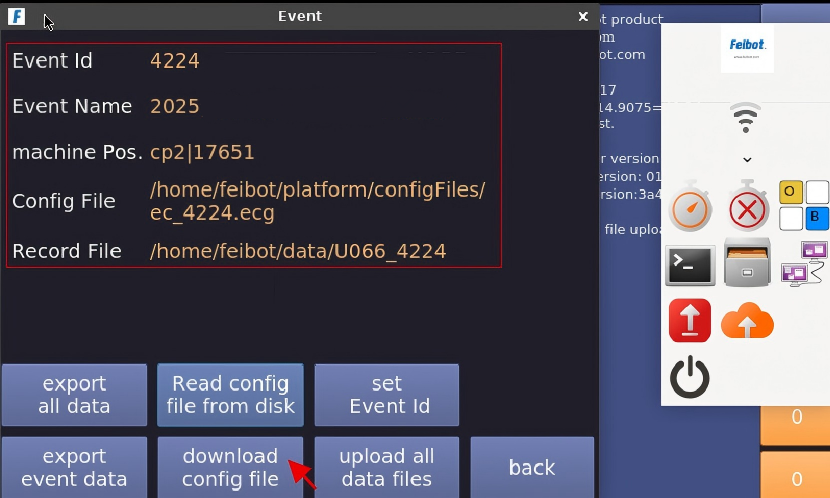 During official events, multiple timing devices are deployed at different timing points. To accurately determine the specific location of each timing device, users need to set up the timing devices and their corresponding locations in the Run8 Cloud timing backend. When the timing device is connected to the network, click "download config file" to transfer the configured timing information to the device. Users can easily view the event and timing point of each timing device through its screen (as shown in Figure 2.5.)