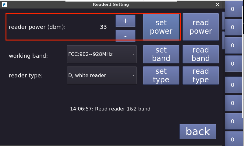 Before the official event, set the corresponding reader power to 33 dbm (as shown in Figure 2.20.)