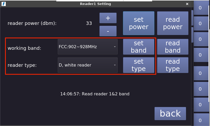 The timing device is pre-configured with the reader type and working band before shipment. Do not change the reader type or working band parameters arbitrarily (as shown in Figure 2.21.)