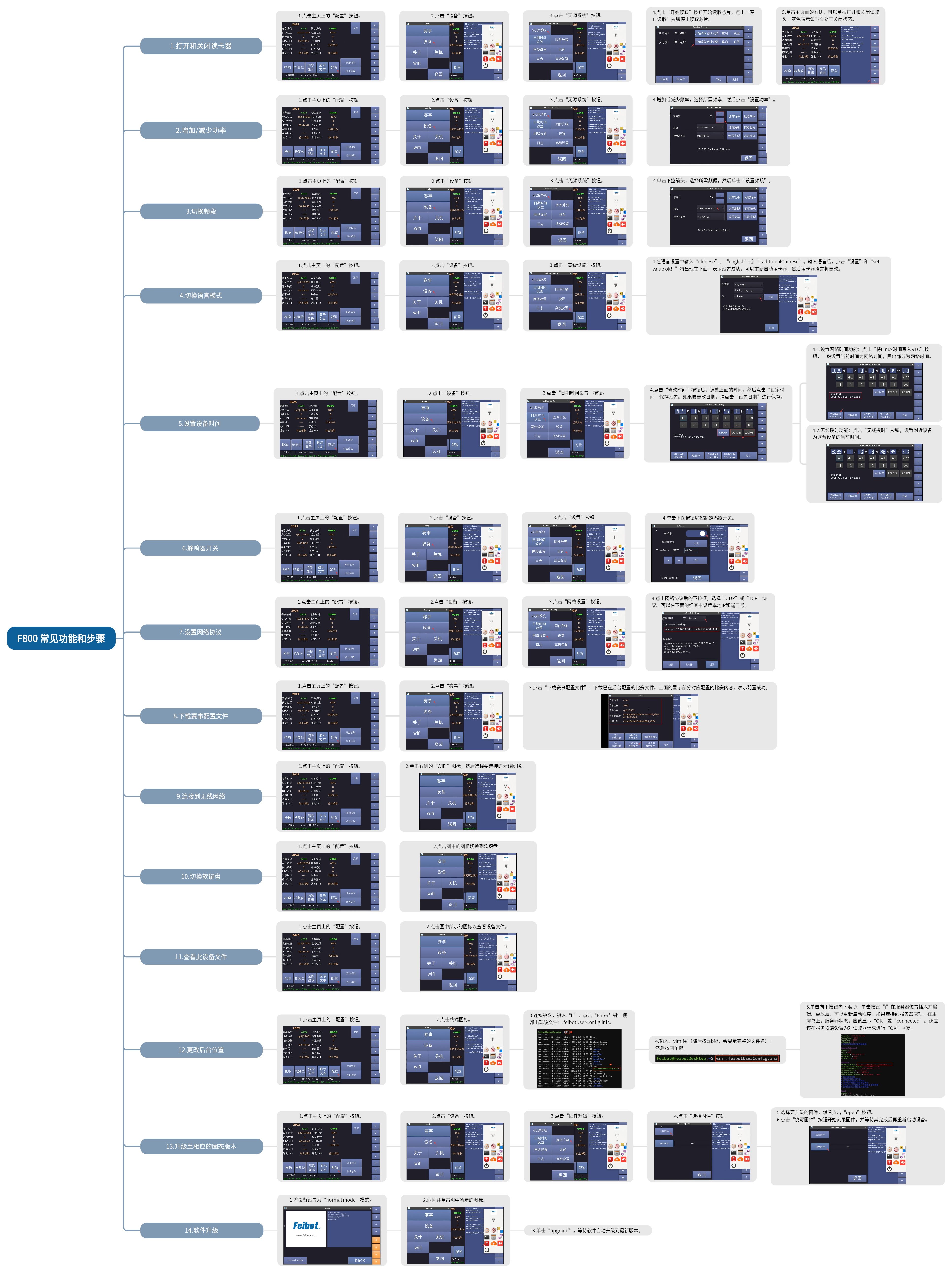 Feibot F800超高频主机为Feibot 研发的路跑计时系统,适用于马拉松、越野赛、体能测试等多种赛事。该主机采用可触摸、图形化的界面,操作直观灵活,确保高灵敏度的同时降低能耗,性能优越。单台主机支持8通道读取,标准情况下可连接 8 米的地毯天线。