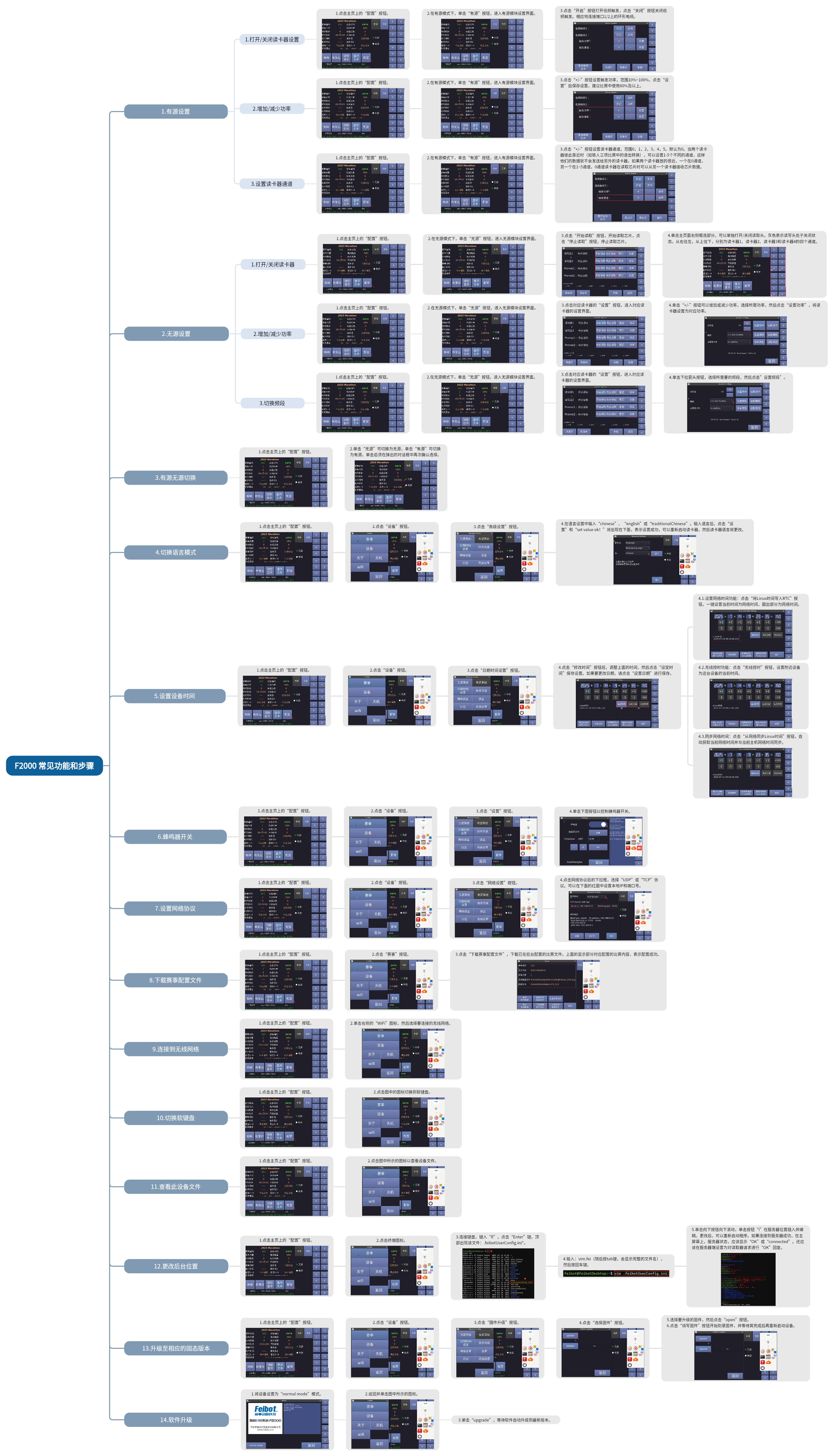 Feibot F2000一体计时主机,集有源技术与无源技术为一体,适用于马拉松、越野赛、体能测试等多种路跑赛事和自行车赛、滑雪、摩托车等多种高速计时赛事。单台主机最大支持16通道读取,可搭配超高频地垫天线和有源低频线圈使用,适用于多种赛事和场景,具备优秀的综合性能。