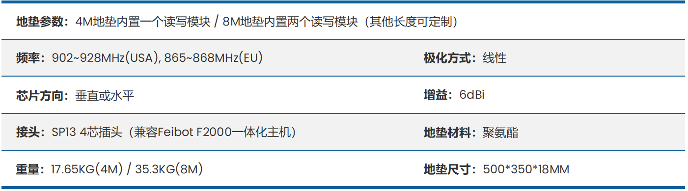 Feibot FMA2 Pro地垫,通常与F2000一体计时主机搭配使用,FMA2 Pro地垫在尺寸规格上与FMA2地垫天线一致,但是相较于FMA2地垫天线具备更卓越的性能。FMA2 Pro地垫新增了内置读写器,实现数据读取更加快速、精准,数据不易丢失。