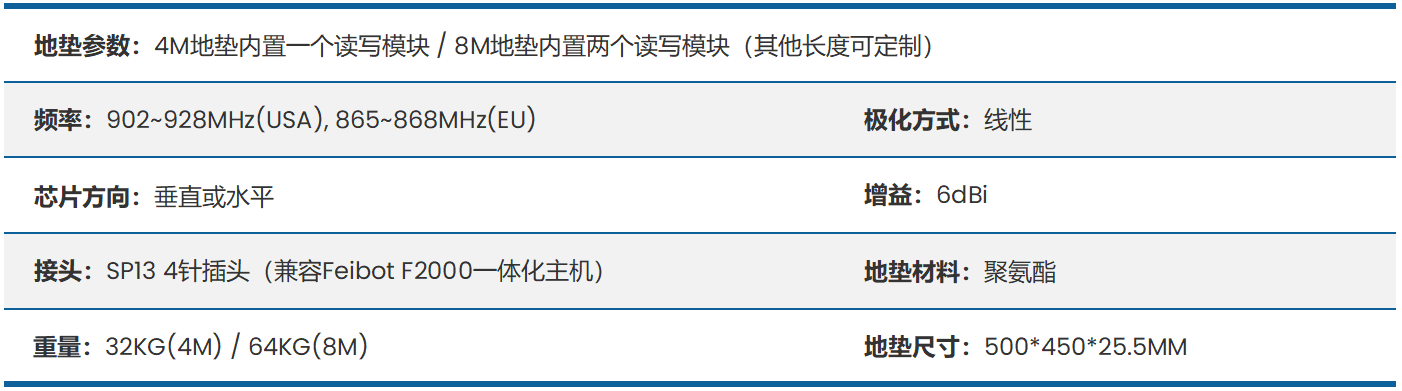 - 集成读卡器模块内置于地垫中,配有超短天线电缆,最大程度减少信号损失,提升读取性能。