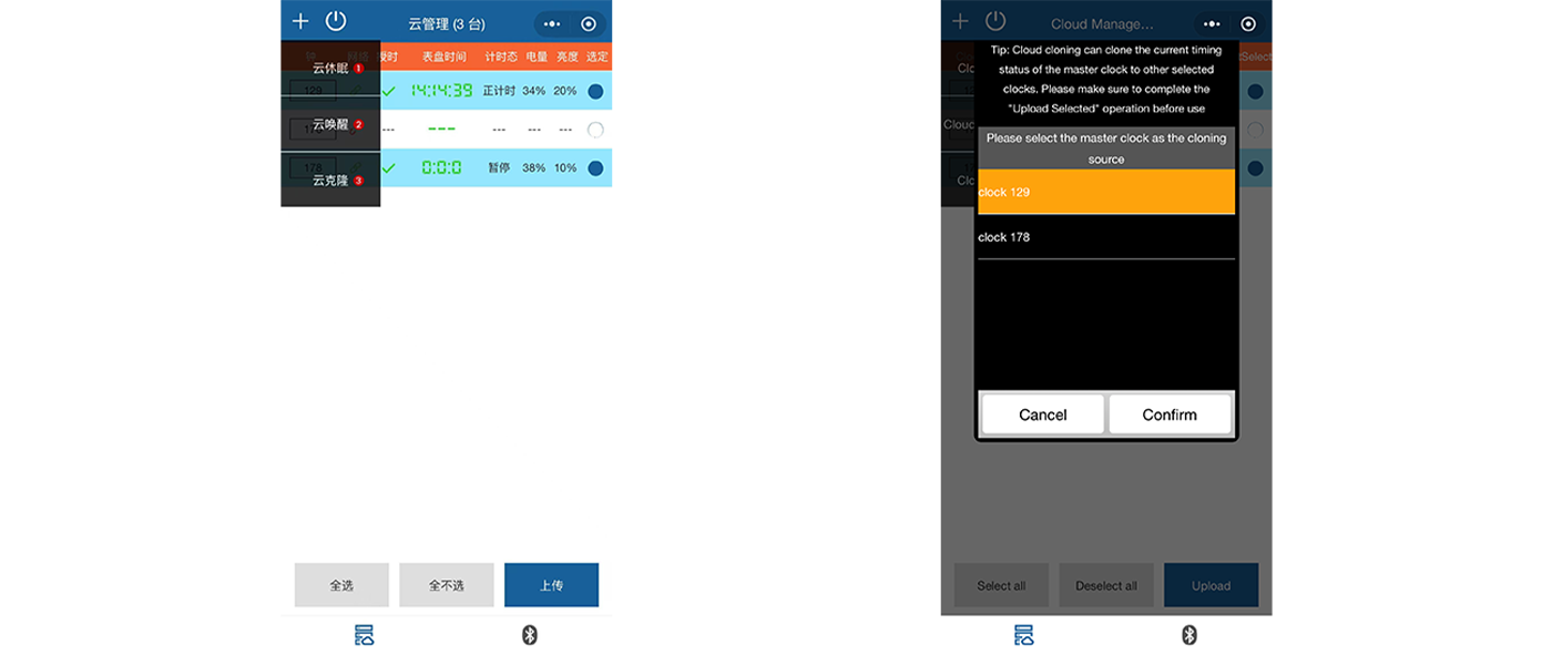 (4) Step4: After setup, select the multiple clocks to clone and ensure their time matches the master clock. (Both the master clock and the cloned clocks must be in the authorized state to use the clone feature.)