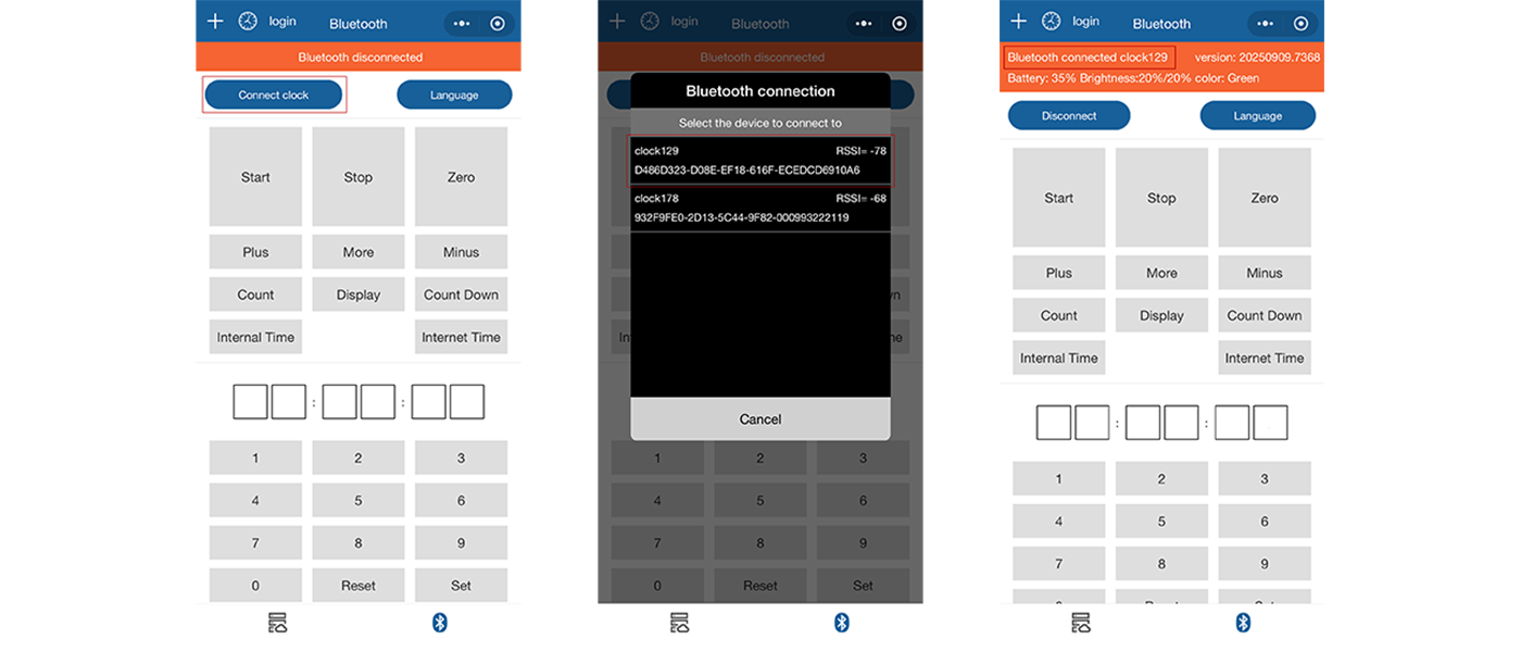 3. Step3: After a successful connection, the relevant information of the connected clock will be displayed in the orange box on the page.