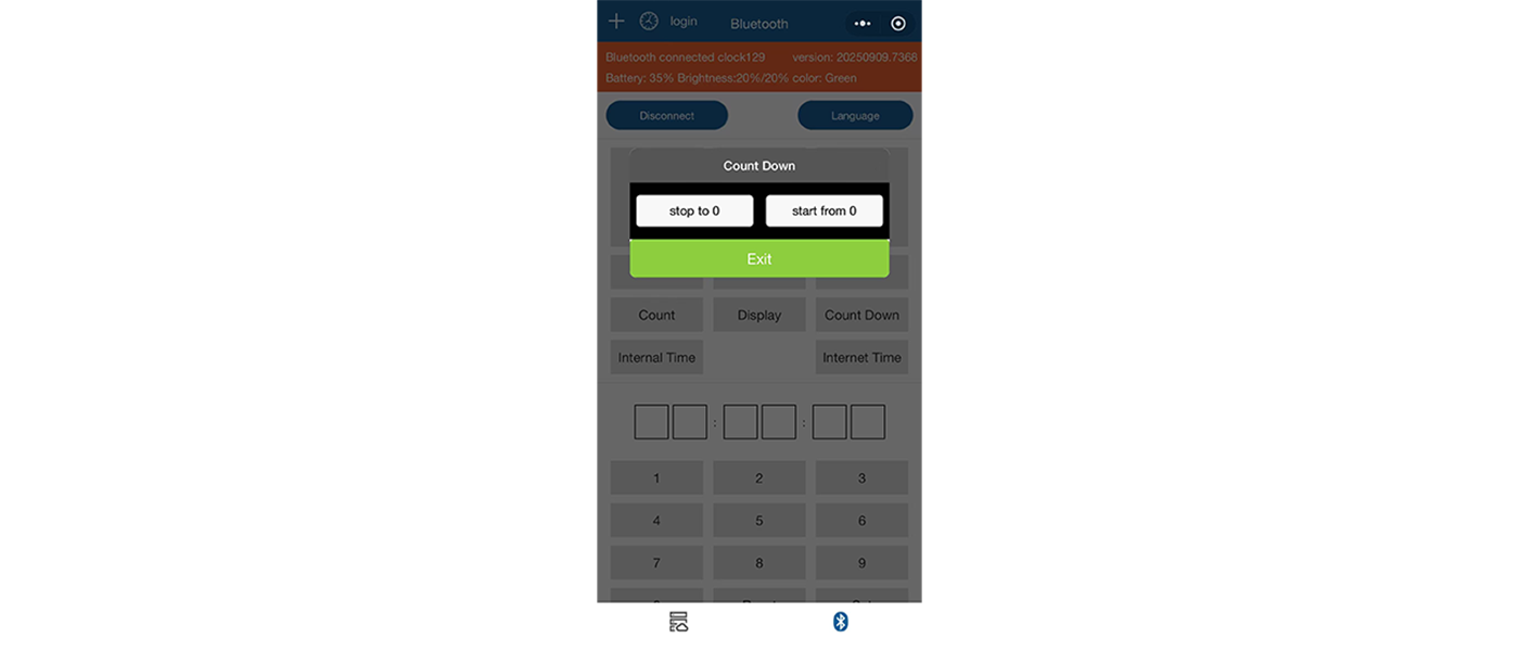 3. Count Down To: Set the target time for the clock. After selecting this option, the clock will count down to the set time, and once the countdown reaches the target, it will reset to zero and begin counting forward. For example, if an event is scheduled to start at 8:00:00 AM, set the target time to 8:00:00, and the set time should be later than the current time. When the clock reaches 8:00:00, it will reset to zero and begin counting up.