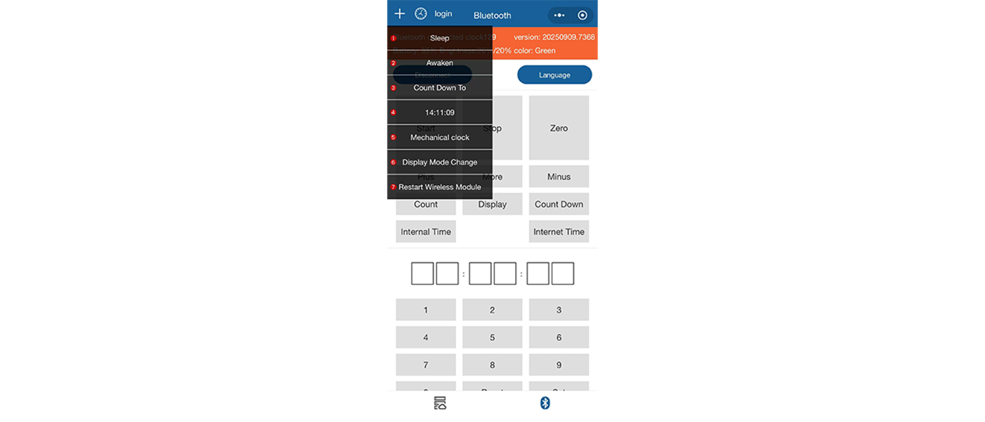 (9) Set Number: Enter the time you want the clock to display, then click the "Set" button. The clock will display the set time. Note: The input time must be in the correct format. Invalid time formats cannot be set (e.g., 12:60:61.)