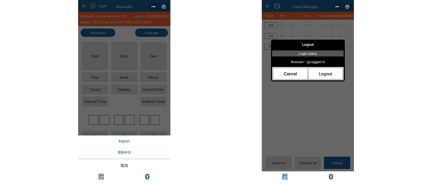 3. Time Synchronization: Use Bluetooth to synchronize the clock with the mobile device's reference time. A green "√" indicates successful synchronization. After synchronization, you can perform the "Clone" operation on the clock. Clocks that have not been synchronized cannot perform the "Cloud Clone" operation.