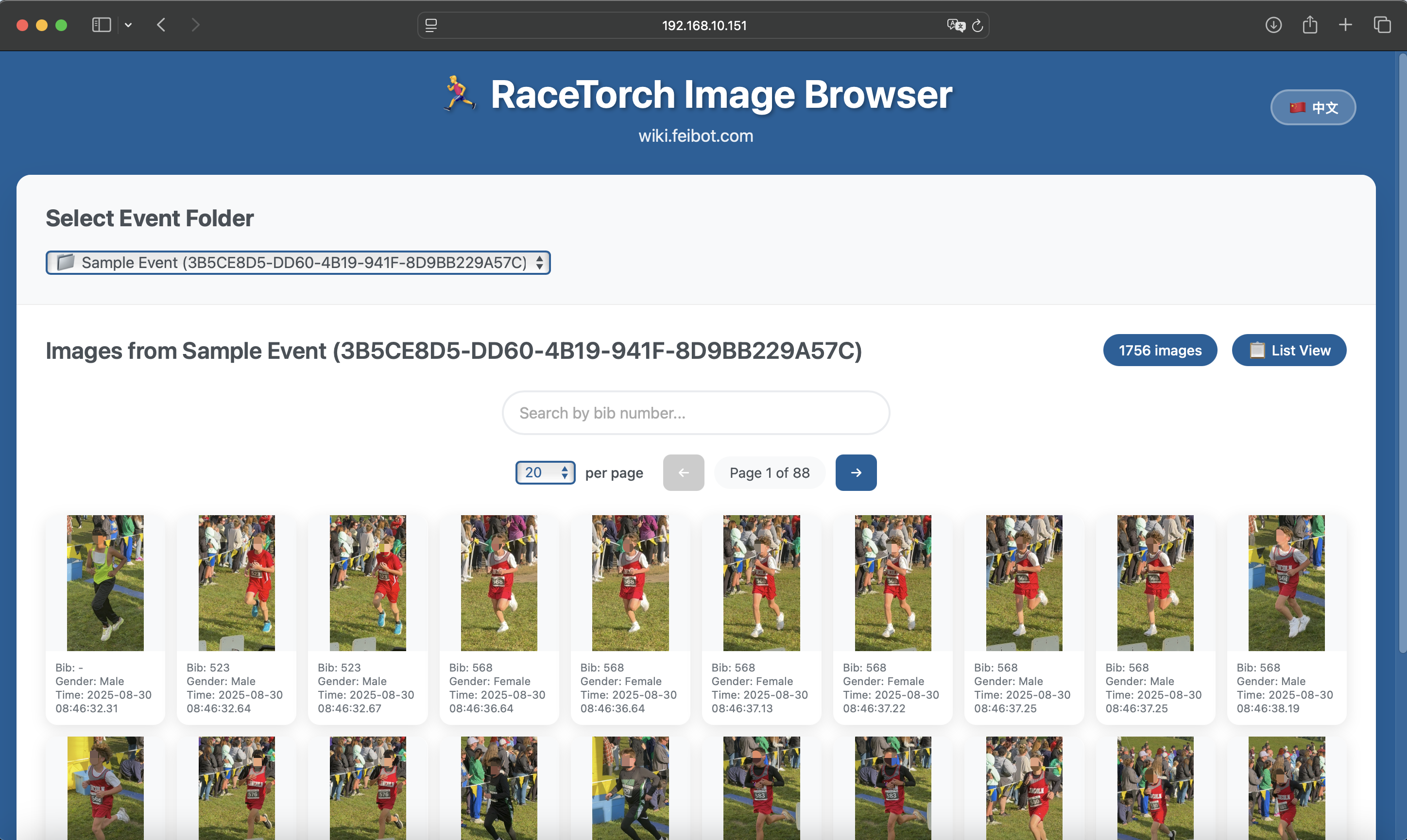 (1) First, check the access address of the RaceTorch software. lt's located at the bottom of the Events page. For example: Network: http://192.168.10.151/images/ The IP address here is an example. Please use the address displayed on your device.