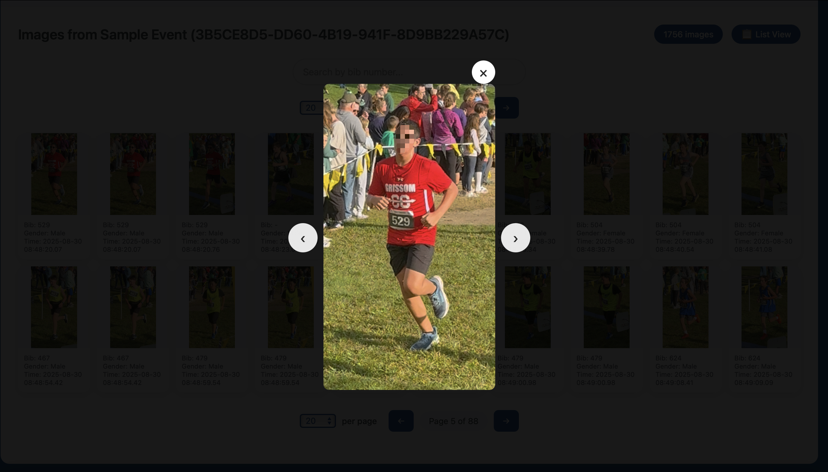 (4) Clicking on Sample Event (3B5CE8D5-DD60-4B19-941F-8D9BB229A57C) will display all the detected athlete images for this event.